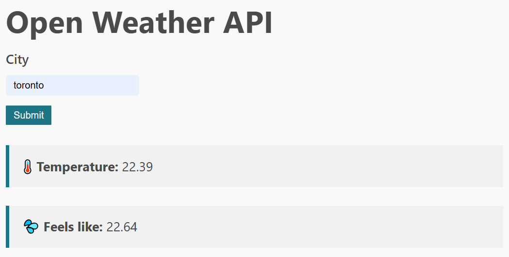 <h1>Open Weather API</h1>